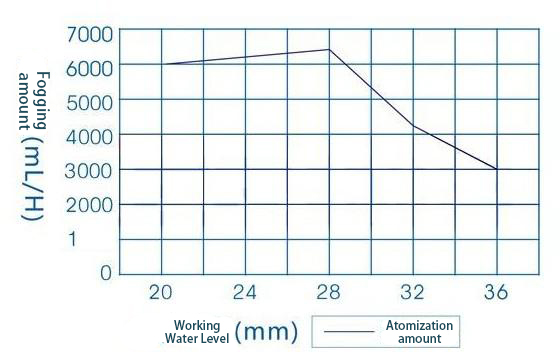 The relationship between fog generation and working water level is shown in the following figure