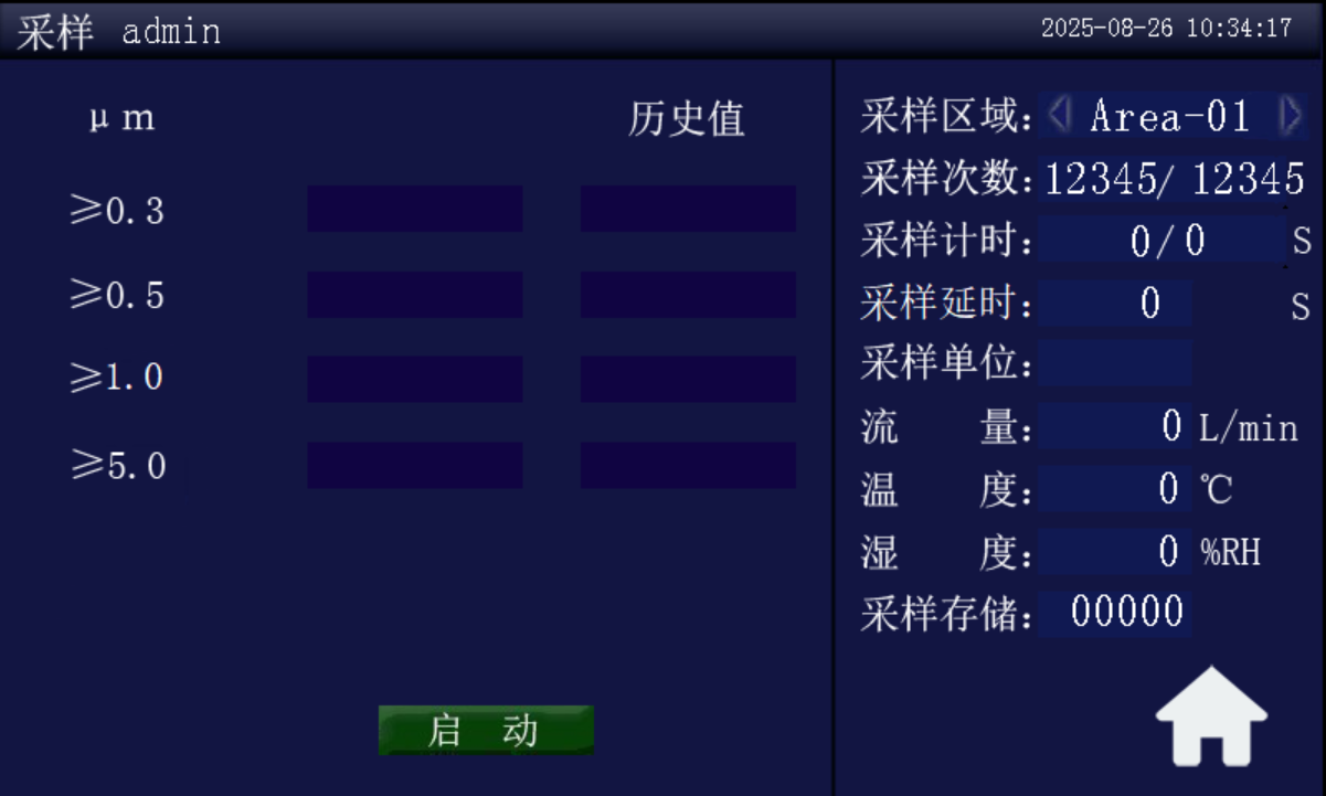 Sampling interface, click on start sampling to perform gas sampling and counting for the current environment