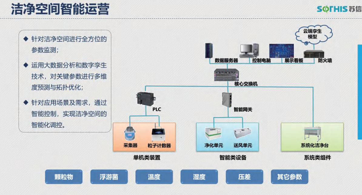 依托强大的硬件研发能力,苏信可提供各类洁净度采集和检测设备,如浮游菌采集器,28.3L粒子计数器、风量仪等,设备可采用WiFi连接,集成进入苏信自主开发的线上控制系统,通过智能控制,实现洁净空间的智能化调控。