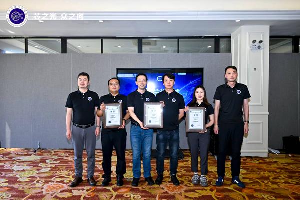 企业代表发言结束后,由联盟常务理事长刘阳先生、秘书长周勇先生、联盟理事陶有武先生分别为三家企业颁发泛半导体行业联盟认证的“合格供应商”证书。