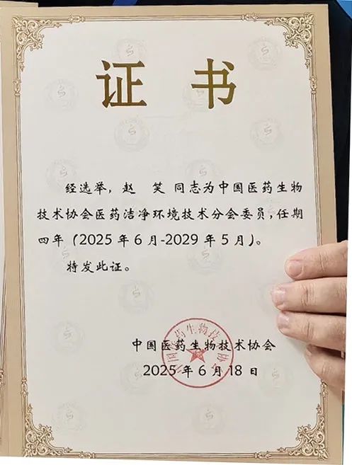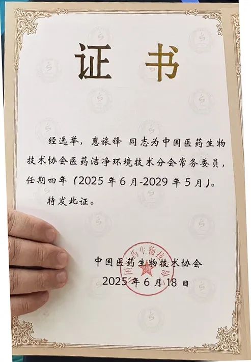 经大会选举,苏信环境科技有限公司董事长惠旅锋同志当选为中国医药生物技术协会医药洁净环境技术分会常务委员,任期四年(2025年6月-2029年5月)。同时,公司赵笑同志当选为分会委员,任期同步。此次任命不仅是对两位同志个人专业能力的认可,更是对苏信环境科技在医药洁净环境领域技术实力与行业贡献的充分肯定。