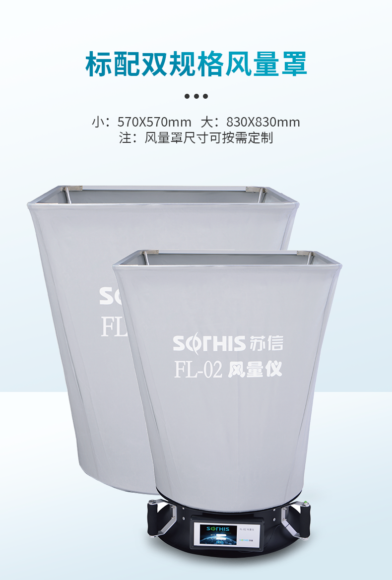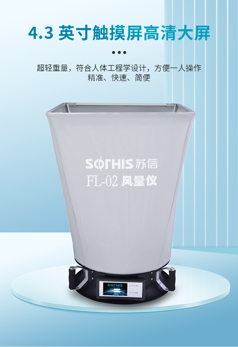 FL系列风量仪可直接用于测定风口和管道风量,测量快速简便,广泛应用于暖通空调、净化技术等行业。为方便客户现场检测工作,专门配备了移动式支架,测量高度可升至3.2m(含风量仪本体1m)。我司根据国外同类产品的先进技术,在国内率先推出国产化风量仪,每一台风量仪的出厂都通过严格的0.5级标准风洞标定装置进行多点风量校正,为用户准确测定风量提供可靠的质量保证。