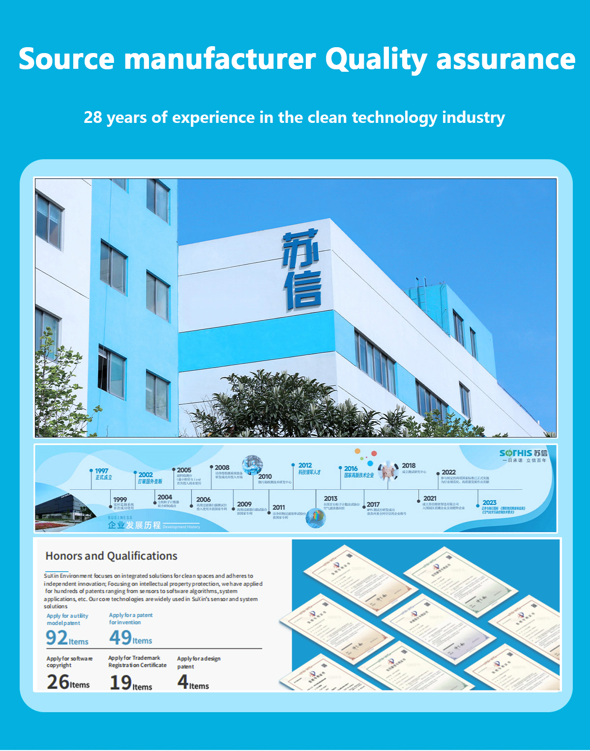 Suzhou Suxin Environmental Technology Co., Ltd. has long been committed to the research and application of integrated solutions for intelligent operation in controlled environments. The company takes innovation as the engine and has formed a complete product matrix covering particle sensors, environmental detection instruments, local purification equipment, and supporting consumables, providing customers with one-stop clean technology application support from research and development design, supply chain management to sales services.